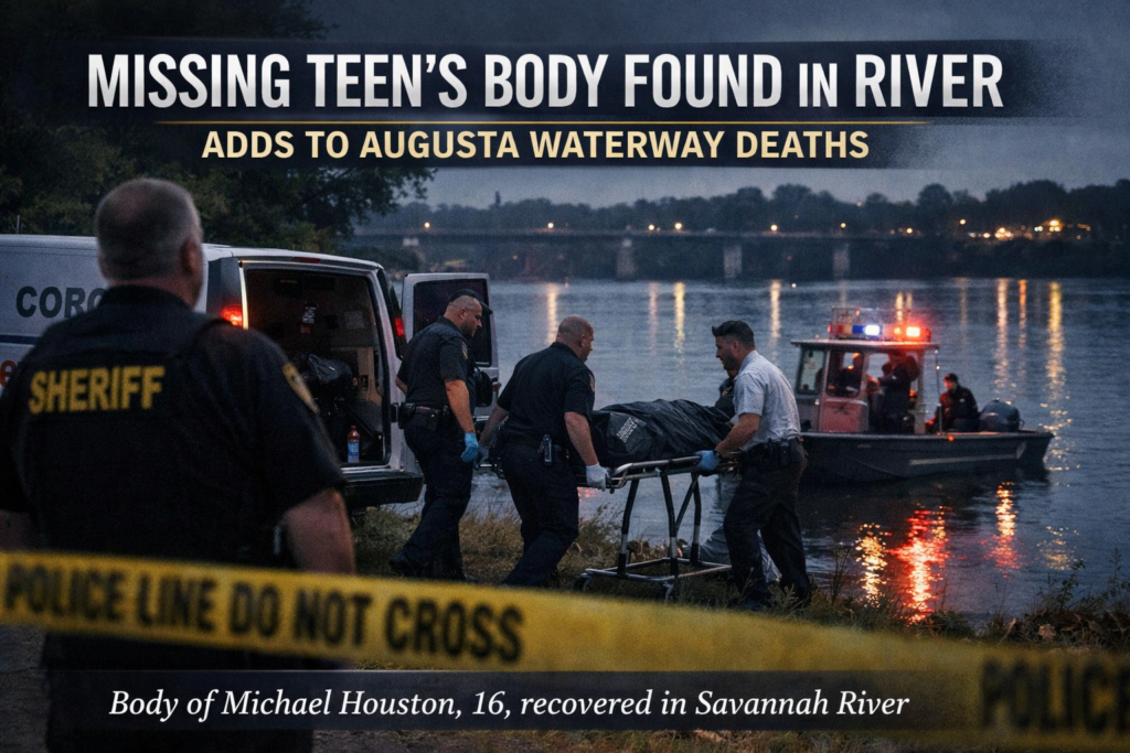 Augusta, Ga. — The body of missing 16-year-old Michael Houston was recovered Sunday from the Savannah River in Augusta, the Richmond County Sheriff’s Office confirmed. Authorities are working with the coroner to complete identification and determine the cause of death. Houston’s death is the latest in a series of bodies found in Augusta’s waterways over […]